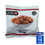 Producto elaborado con carne de vacuno molida, adicionada de grasa animal, sal y aditivos permitidos, formando albóndigas de 30 gramos cada una que posteriormente es envasado en bolsas de 180 gramos.