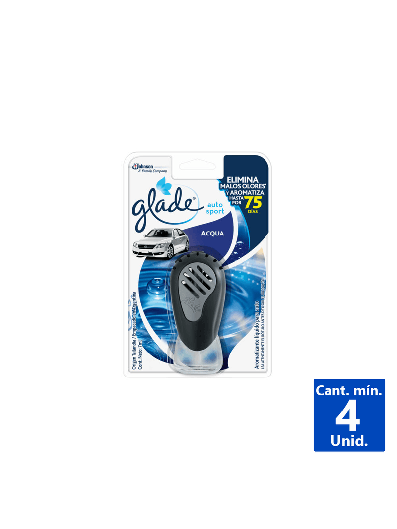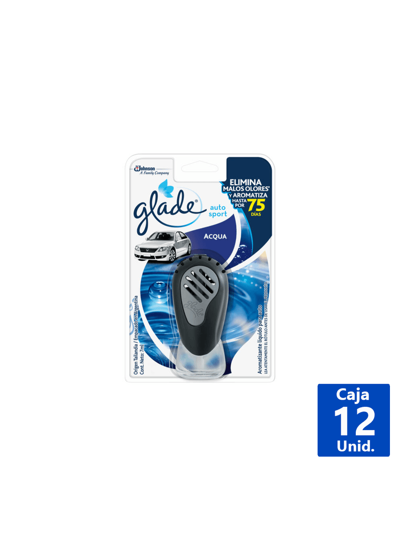 Glade Autosport Acqua 12 x 7 ml es un ambientador diseñado especialmentepara automóviles, proporcionando una fragancia fresca y revitalizanteque elimina los olores no deseados. Cada paquete contiene 12 unidades de7 ml, ideales para mantener tu vehículo con un aroma limpio yrefrescante durante tus viajes. Su fórmula de larga duración asegura queel ambiente dentro del coche permanezca agradable, mientras que eldiseño compacto se adapta perfectamente al espacio del automóvil.Perfecto para quienes desean una experiencia de conducción másplacentera con un toque de frescura constante.