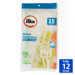 Descripción: Bolsas Herméticas Grandes 27x28 cm. 25 un. Sku 1424045 / 10258790 Beneficios: Libres de BPA. Material 100% reciclado y reciclable. Apta para el contacto con alimentos y freezer. Esencial para cada vez que quieras almacenar o transportar algo. Cierre fácil y hermético ayuda a que tus alimentos permanezcan frescos y no entre en contacto con el exterior. ¡Porque los pequeños detalles hacen una gran diferencia con Ilko!