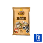 Cobertura blanca Costa, posee una alta fluidez la cual sirve para moldear como para bañar tus preparaciones, Formato de 1 kg listo para utilizar no requiere templado