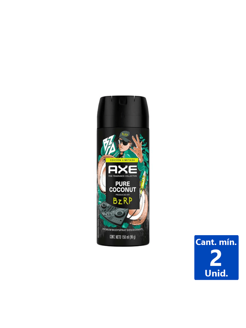 Axe Pure Coconut by BZRP es la nueva edicion limitada de la colección de fragancias finas. Esta nueva produccion de BZRP combina el crujido del eucalipto fresco y la hoja de cedro, además de la madera terrosa del acorde de corteza de roble y la suave madera de cedro. Con un toque de coco crudo que se calienta con una base de musgo de roble y vainilla profundamente adictiva para lograr un aroma dulce y fresco. El poder de BZRP en una fragancia.