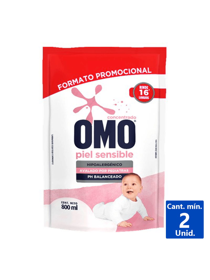 El Detergente Omo Piel Sensible Líquido Doypack 800ml está diseñado especialmente para quienes cuidan su piel y la de su familia. Su fórmula hipoalergénica garantiza una limpieza profunda sin irritar la piel sensible, ideal para prendas que necesitan un trato suave y eficaz al mismo tiempo. Con capacidades de eliminación de manchas, este detergente asegura que tu ropa luzca impecable. Su presentación en práctica bolsa Doypack permite un fácil manejo y almacenamiento, haciéndolo perfecto para el uso diario en el hogar.