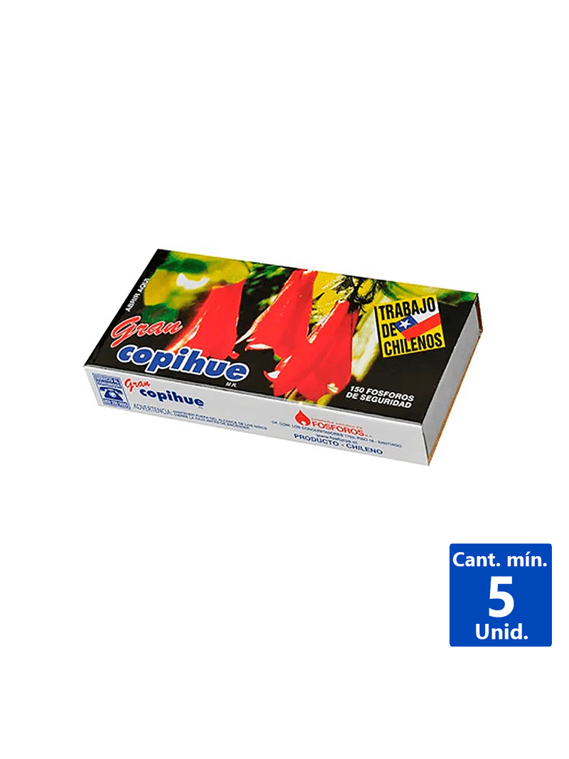 Caja de fósforos con 150 unidades, ideales para encender velas, fogatas y otros elementos que requieren fuego.