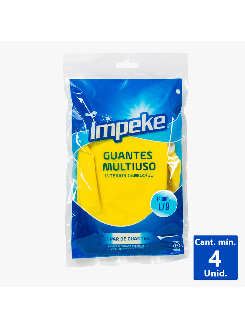 Descripción: Guantes Multiuso 100% Látex con interior gamuzado talla L Sku 1011636 / 10258151 Beneficios: Ideales para la limpieza del hogar y lavado de loza. Su interior gamuzado absorbe la humedad. La palma y dedos tienen textura antideslizante. Instrucciones de Uso Lavar y dejar secar a temperatura ambiente con los dedos hacia arriba. Evite manipular diluyentes como aguarrás. ¡Dale a tus manos el cariño que se merecen con Virutex!
