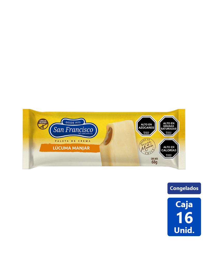 esta paleta te seduce con su apariencia tentadora y exótica. Su superficie está cubierta con un baño de manjar, suave y cremoso, quese derrite delicadamente en tu boca, revelando la sorpresa oculta en su interior: un corazón de helado de lúcuma, elaborado con la ffruta dorada y aromática