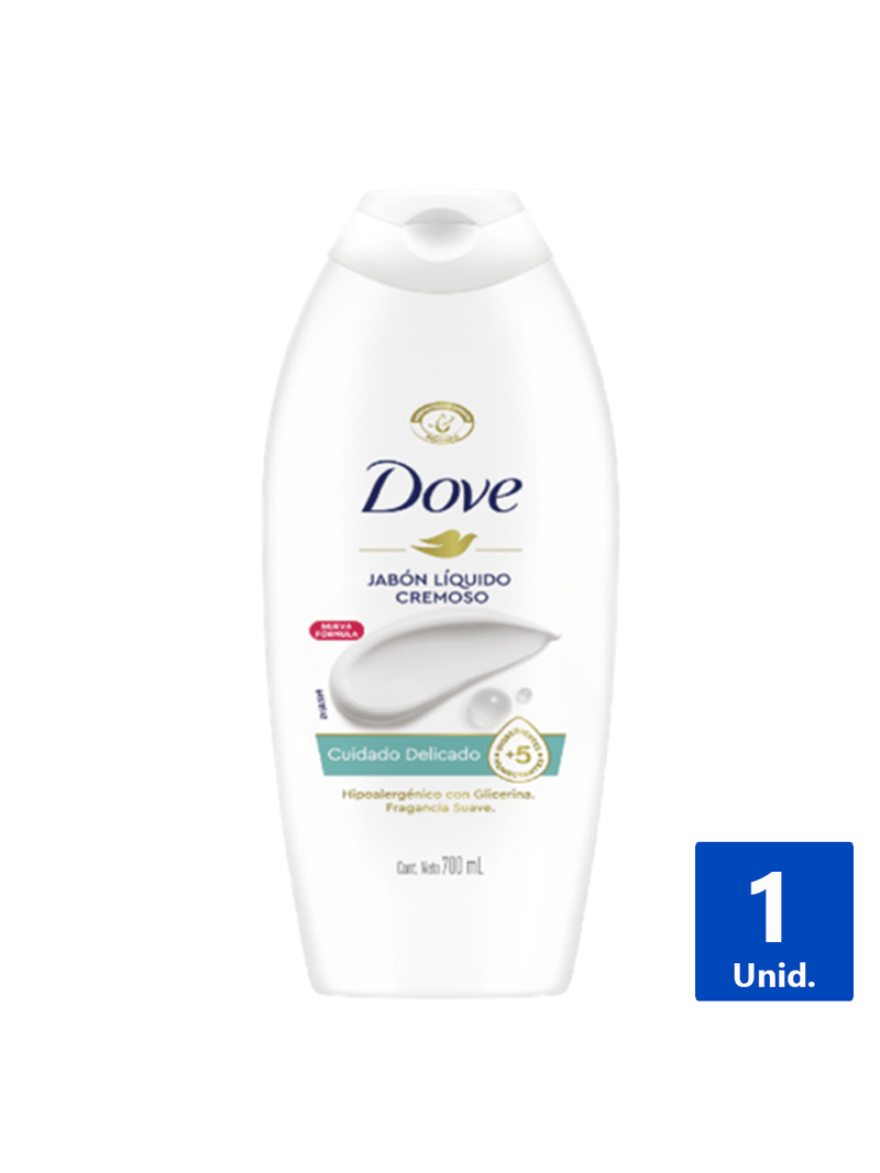 Cuida tu piel con Jabón Líquido Dove Cuidado Delicado 700 ml. Su fórmula hidrata y limpia suavemente, dejando una sensación fresca. ¡Piel tersa y nutrida con el pH neutro de Dove, para toda la familia!