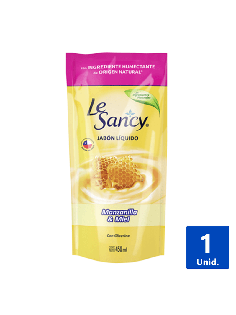 Jabón líquido de 450 ml en doypack, con aroma a manzanilla y miel. Limpia delicadamente tu piel, dejándola hidratada y confortable.