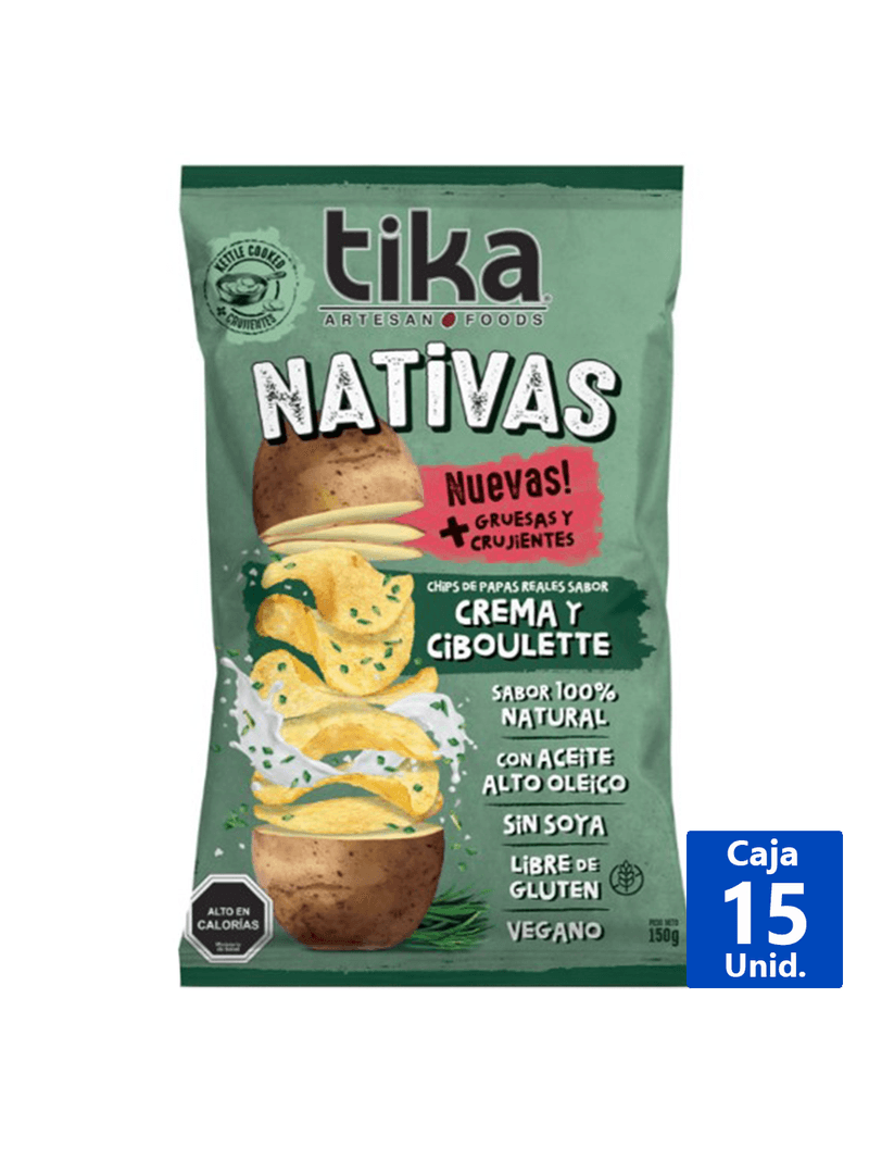 Las Tika Nativas sabor Crema Ciboulette son ideales para quienes buscan un snack lleno de sabor y textura crujiente. Perfectas para disfrutar en cualquier momento del día.