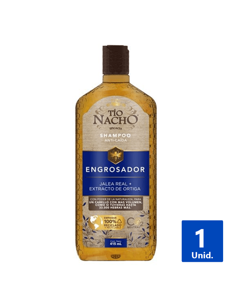 Dale más volumen y fuerza a tu cabello con el Shampoo Tío Nacho Sistema Engrosador de 415 ml. Su fórmula ayuda a fortalecer cada hebra, dejando tu melena visiblemente más densa y abundante. ¡Pelo con cuerpo!