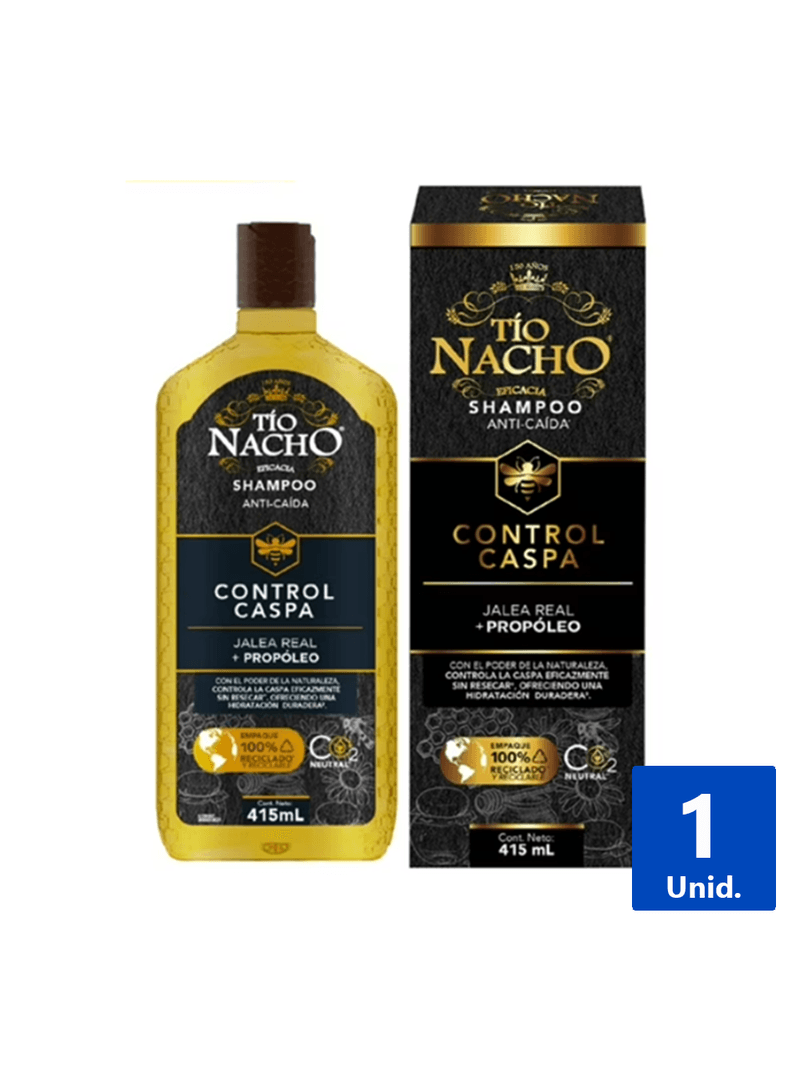 Elimina la caspa y fortalece tu cabello con Shampoo Tío Nacho Control Caspa 415 ml. Su fórmula natural purifica y nutre. ¡Pelo sano, libre de caspa y con vitalidad, un cuidado eficaz para ti!