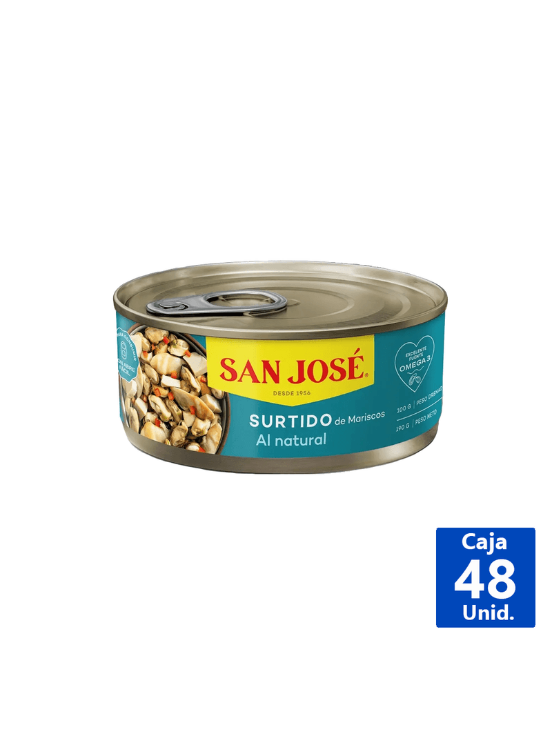 Surtido Mariscos Agua José 190 g es una selección de mariscos enconserva, que ofrece una combinación práctica y deliciosa para tusrecetas. Conservados en agua, estos mariscos mantienen su sabor fresco ytextura, listos para ser añadidos a ensaladas, pastas, guisos ocualquier plato donde desees un toque marino. La presentación en lata de190 gramos es perfecta para preparaciones rápidas y para disfrutar de lacalidad del marisco en la comodidad de tu hogar. Ideal para quienesbuscan conveniencia sin comprometer el sabor.