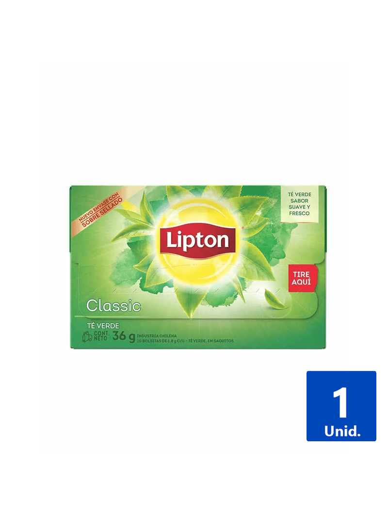 Lipton té Verde es un blend de té verde desarrollado por sommeliers con hojas de té provenientes de oriente para lograr un irresistible sabor y aroma. Saquitos especiales con doble cámara que permiten una mejor y más rápida infusión en comparación con los saquitos simples. Las hojas de té Lipton provienen de plantaciones sustentables y certificadas por Rainforest Alliance.