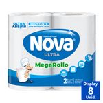Toallas de papel ultra absorbentes de doble hoja de la marca Nova,ideales para la limpieza del hogar. Viene en un paquete de 2 rollos de 24 metros de largo cada uno.