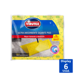 Descripción: Trapero Gigante sin ojal Sintético Ultra Absorbente 50x57 cm. Sku 1900711 / 10104923 Beneficios: Tecnología Lint Free que no deja pelusas. No retiene malos olores. Ideal para usar en baños, cocina y terrazas. Tamaño grande. Instrucciones de Uso. Resistente a lavados frecuentes. No usar en secadora. No centrifugar. No usar suavizantes ¡Despídete de las molestas pelusas y dale la bienvenida a una limpieza sin esfuerzo con Virutex!