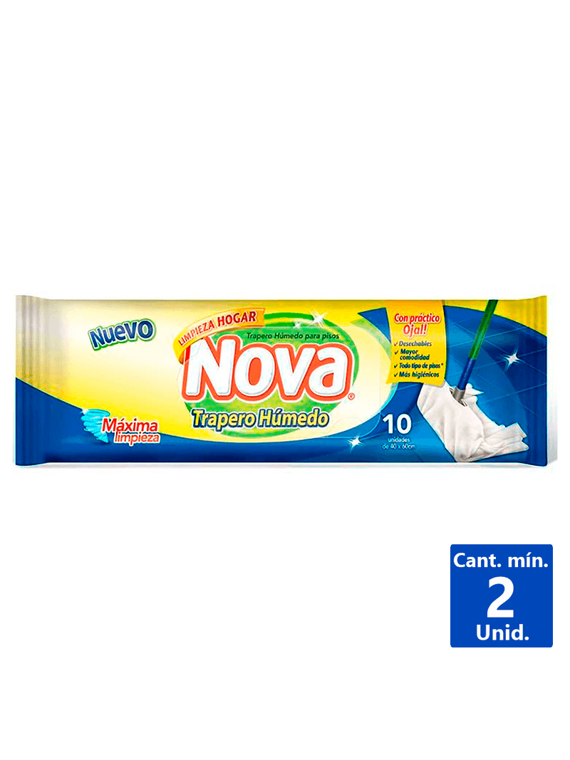 Pack de 10 traperos húmedos Nova ideales para la limpieza de suelos, que eliminan la suciedad y la grasa de manera efectiva sin rayar ni dañar las superficies.