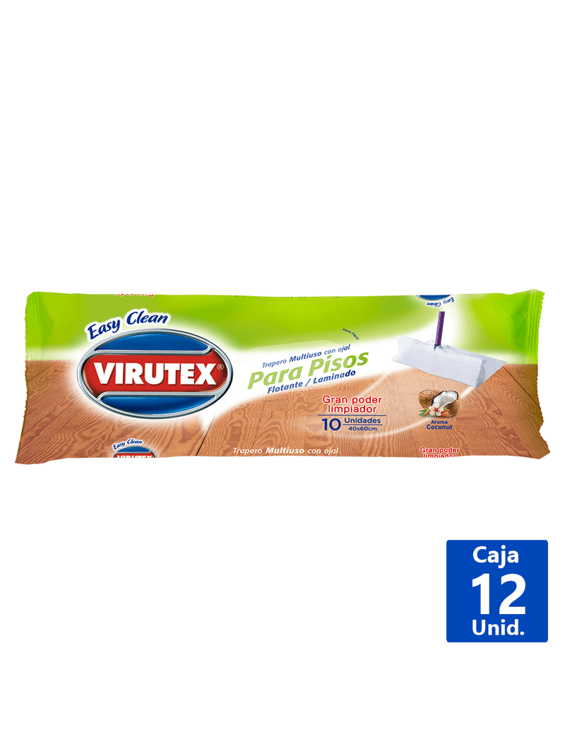 Descripción: Traperos húmedos para Piso Flotante/Laminado c/ojal Aroma Coco, 10 un. Sku 1100776 / 10258140 Beneficios: Fácil de usar, limpia y aromatiza de una sola pasada dejando un agradable aroma a coco. Ideal para superficies no porosas cerámicos, baldosas y azulejos lisos. Instrucciones de Uso Retire un trapero, cierre la etiqueta autoadhesiva para mantenerlos húmedos. Importante No apto para higiene corporal, mantener fuera del alcance de los niños. Vida Útil 24 meses a partir de la fecha de elaboración. Almacenamiento Proteger del calor, mantener en lugar fresco y seco. ¡Disfruta de la tranquilidad de un hogar verdaderamente limpio!